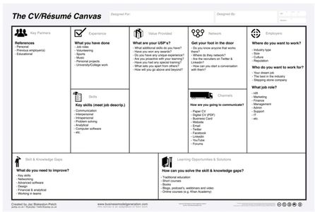 Developed by Jaz Blakeston-Petch, this canvas helps you plan and develop your CV or Résumé. To download visit HERE.
