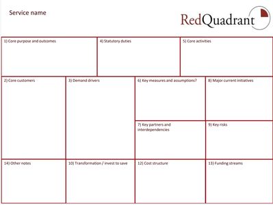 Developed by Red Quadrant this canvas, as its name implies, helps council’s map out and design public services. For a large PDF of this canvas visit HERE. Thanks to Ben Taylor for bringing this to my attention.