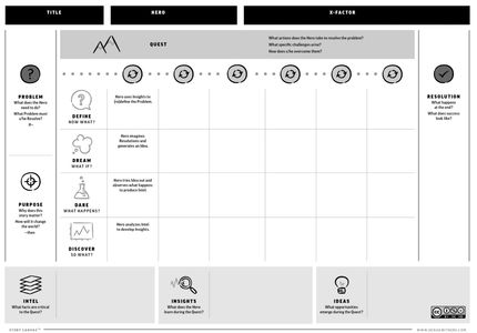 Developed by author Denise Withers, this canvas can be used in a number of ways. Two primary ones are to capture, map out and make sense of existing stories / experiences AND to develop new stories to support the creation of new ideas into products, services, experiences, strategies – even stories. In effect this canvas is a tool for innovation. This canvas can help you create an engaging way of influencing key stakeholders for your ideas. For more information on the canvas and the book “Story Design” visit HERE. I would definitely recommend reading the blog posts around the book HERE.