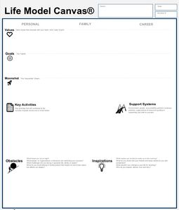 The Life Model Canvas by Ayori Selassie is a simple self coaching tool to consider your values and purpose. The template is pretty self explanatory. You can download it from HERE. For more supporting resources visit HERE.