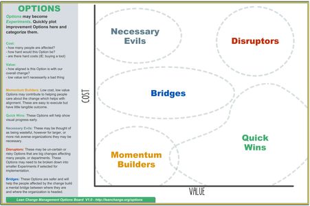 Thanks to Sharon Dale for sharing this with me. Whilst the initial canvas (#18) was on my radar, I had not seen the supporting tools. I am unsure if they really are a form of canvas, or just a 2 x 2 / planning board. See HERE for more information on the whole collection by Jason Little. Would love to get your views! The first is a canvas to plot improvement ideas. The text that is on the canvas is fairly self explanatory (full pdf HERE) :
