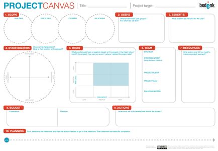 The second project canvas in the collection (see number 8). This has been developed by Bedenk, an innovation consultancy out of Belgium. This canvas helps you plan the front end of a project. You can read more about it AND download a large scale .pdf file HERE (you are required to give name / email). Thanks to Greg Payne for sharing this with me via Twitter.
