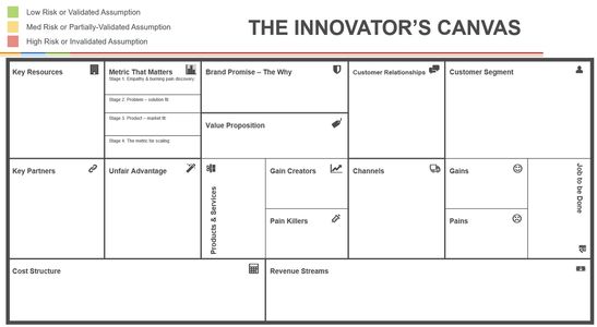 An interesting canvas developed by Jake Nielson, it combines a few other the other canvas ideas to provide platform to experiment and define a working business model. A thorough overview and excellent resources can be found HERE.